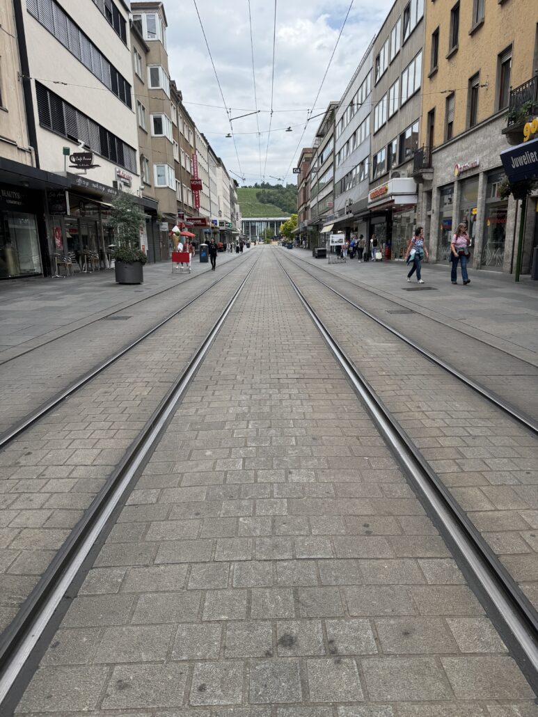 Vom Bahnhof geht es erst mal geradeaus in die Stadt rein.