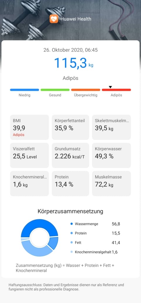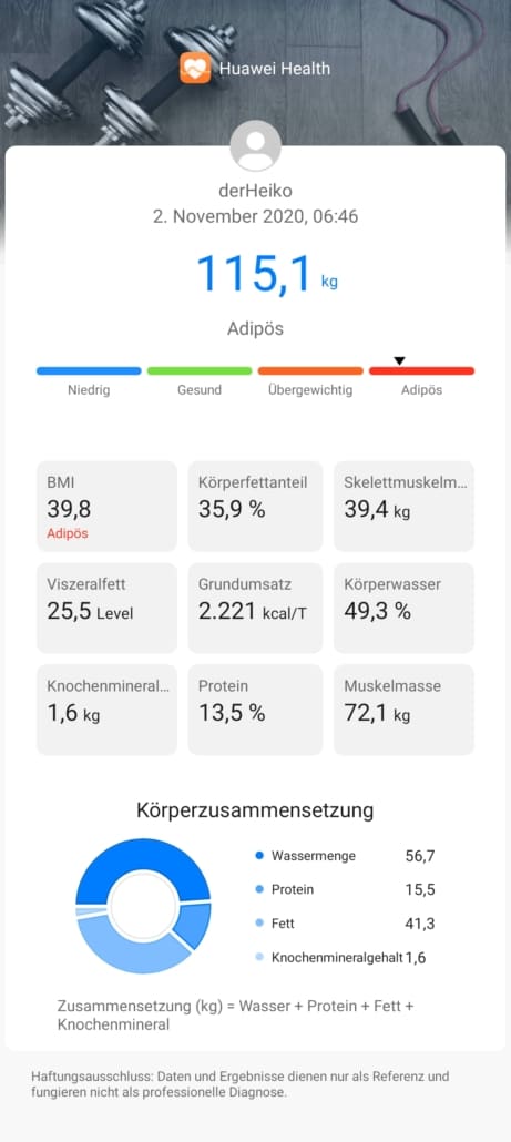 Man selbst hat am Tag X Punkte – abhängig von Alter, Geschlecht, Körpergröße und Gewicht.