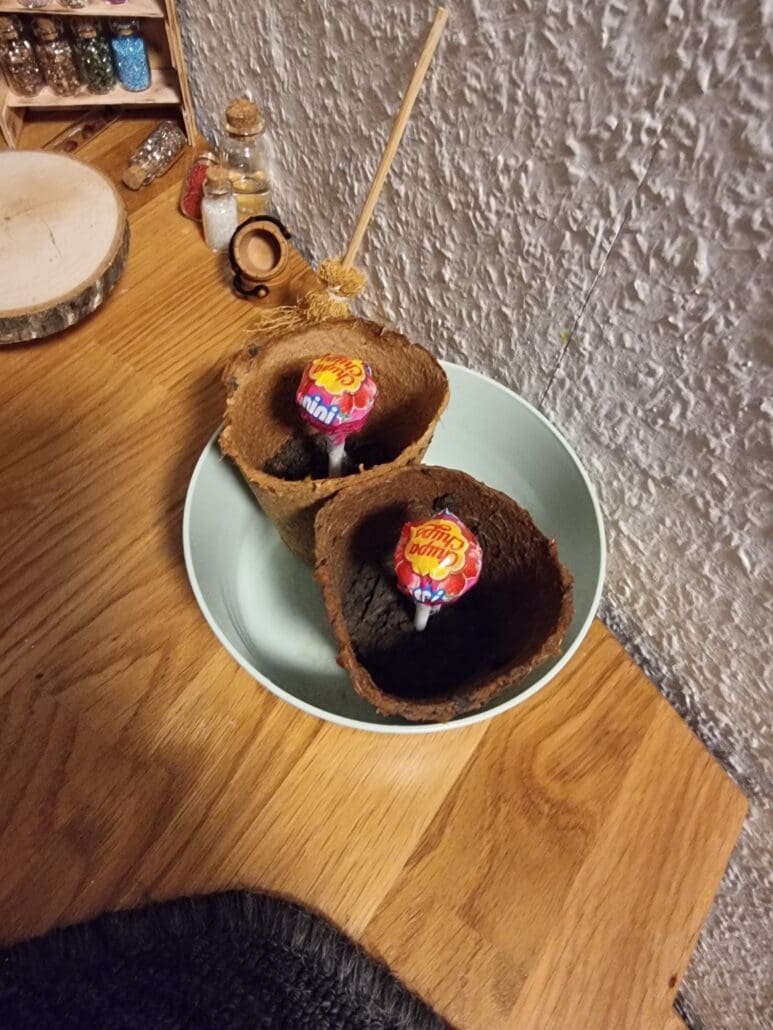 Die Kinder hatten gestern die Aufgabe, Erde zu besorgen, um dort die Zauberbohnen einzupflanzen.