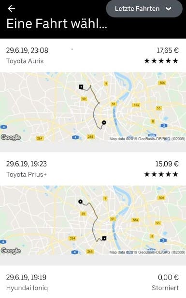 15,09 Euro wurde mir als Preis angezeigt. Bei unserem Taxiruf wären es rund 25 Euro gewesen.