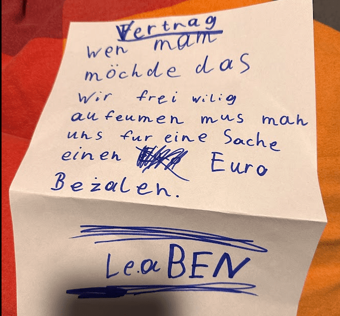 Ich sitze am PC, da kommt meine Tochter mit Sohnemann und bittet mich das hier zu unterschreiben.