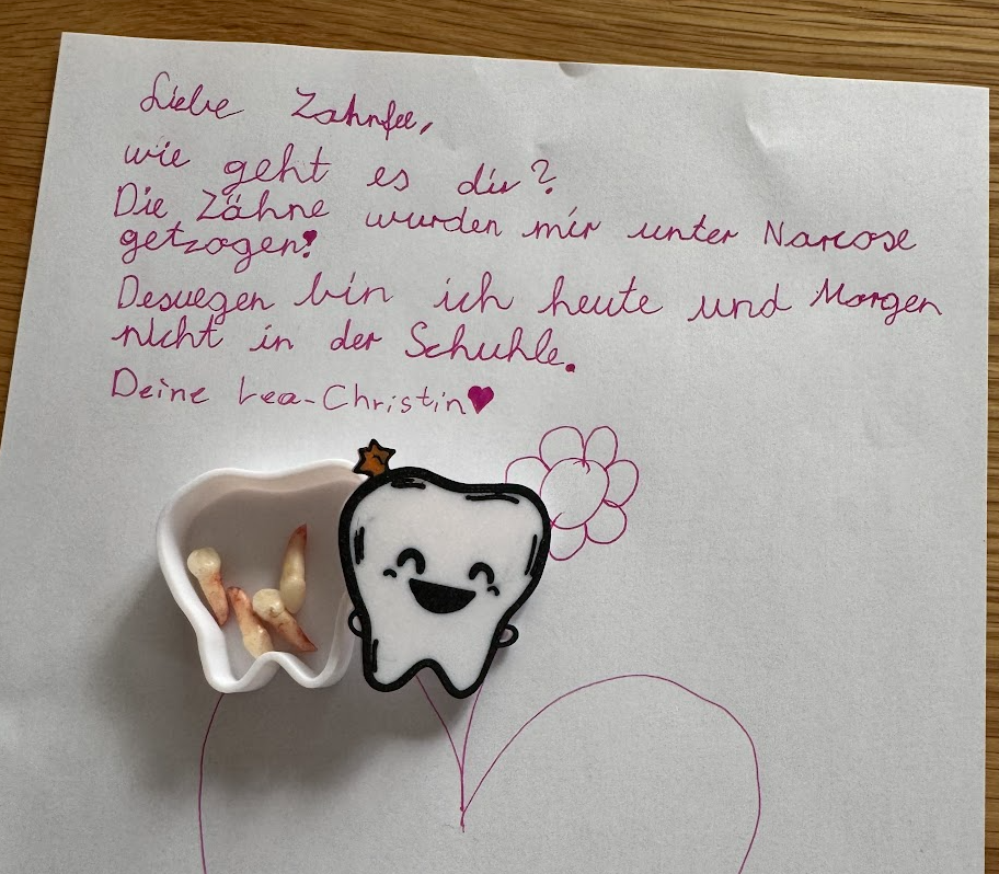 Sie war sehr tapfer und hat am Abend der Zahnfee noch einen Brief geschrieben.