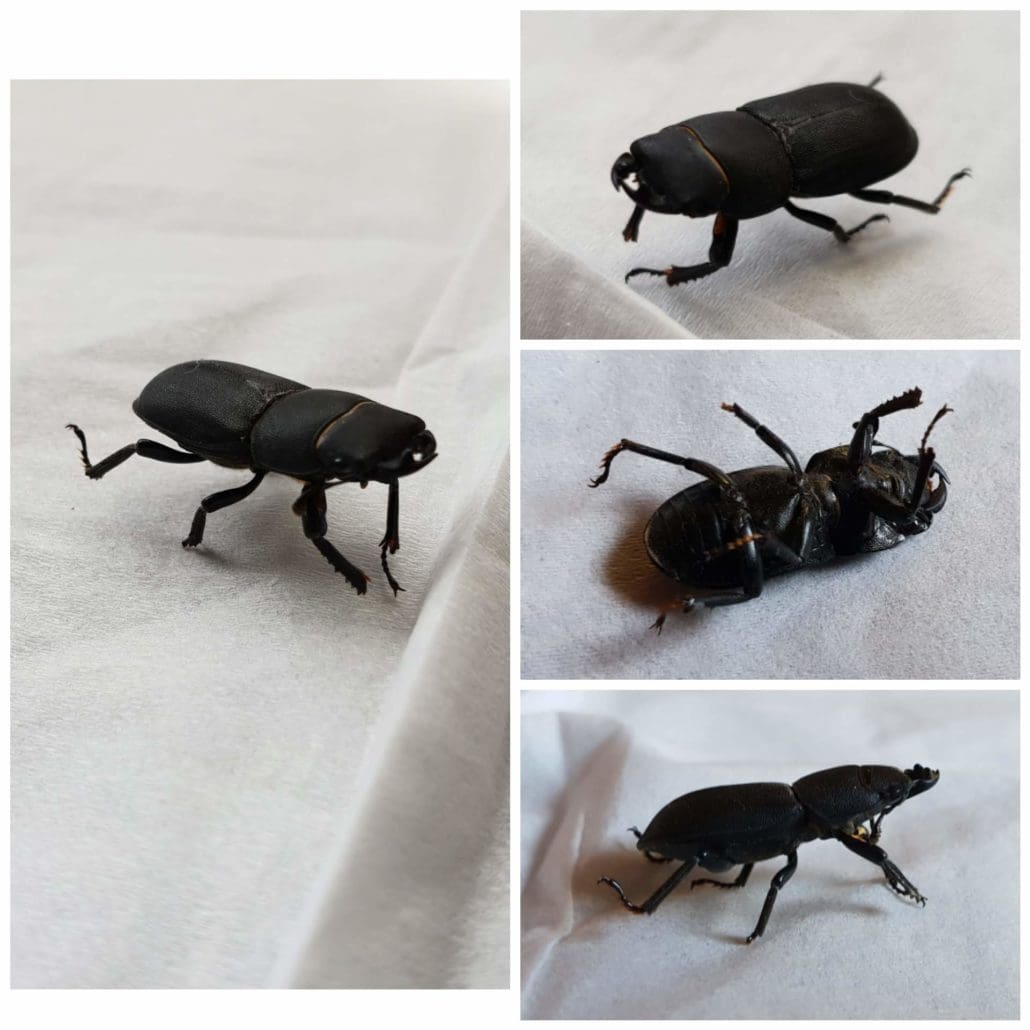 Sieht für mich einem weiblichen Hirschkäfer ähnlich. Allerdings ist eine Wohnsiedlung in der Großstadt nicht gerade das bevorzugte Gebiet der Hirschkäfer. Insofern also unsicher…